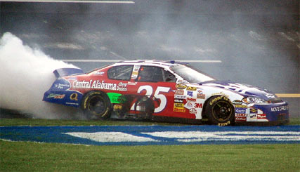 Brian Vickers, de Chevrolet Monte Carlo, venceu neste domingo (08/10) a UAW 500, no Talladega Speedway, 30º etapa da temporada, e 4º dos Play-offs. Foi o primeiro triunfo de Vickers na Nascar Nextel Cup, mas de uma forma muito polêmica.