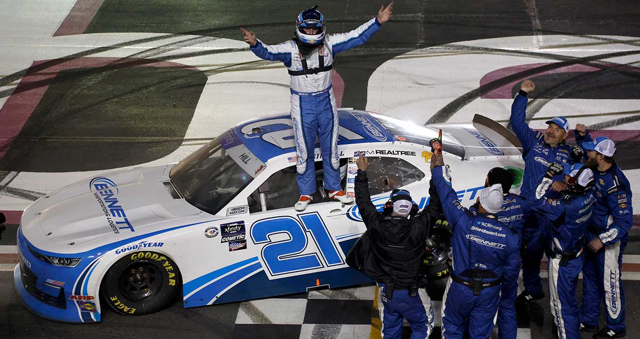 Austin Hill (Richard Childress Racing/Chevrolet) venceu a RAPTOR King of Tough, no Atlanta Motor Speedway, quinta etapa da NASCAR XFINITY Series. Foi a sua terceira vitória no ano, e quinta na categoria. Daniel Hemric (Kaulig Racing/Chevrolet) foi o segundo, seguido por Ryan Truex (Joe Gibbs Racing/Toyota).