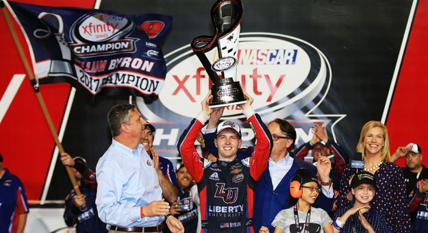 Byron, de apenas 19 anos, fez um intenso duelo pelo tÁtulo com o parceiro na JR Motorsports, o veterano Elliot Sadler, de 42 anos.