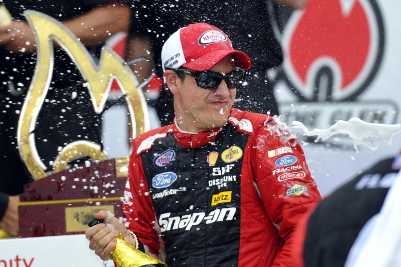 Na relargada, na 27ª volta, Logano ocupava a 22ª posição. Duas rápidas bandeiras amarelas ajudaram o piloto que disputa a NASCAR Sprint Cup, a retornar as primeiras posições. Na 49ª volta, Logano superou Keselowski e reassumiu, em definitivo, a liderança. E abriu mais de meio segundo de vantagem sobre Keselowski (que também havia sido punido por excesso de velocidade nos pits)