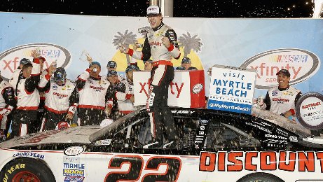 Ryan Blaney (Team Penske Ford) venceu na noite de sábado (26/09), a VisitMyrtleBeach.com 300, no Kentucky Speedway, 27ª etapa da NASCAR XFINITY Series. Foi a segunda vitória de Blaney no ano, e quarta na categoria. Ty Dillon (Richard Childress Racing Chevrolet) e Regan Smith (JR Motorsports Chevrolet) completaram os três primeiros.