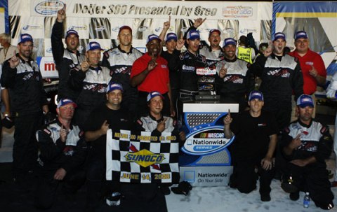 Joey Logano, de Toyota, venceu no sábado (14/06), a Meijer 300 no Kentucky Speedway, 16º etapa da Nascar Nationwide Series. Logano se tornou o mais jovem vencedor da categoria, com 18 anos e 21 dias. Scott Wimmer, de Chevrolet e Mike Wallace, de Toyota, completaram os três primeiros.