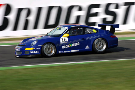 Nesta sexta-feira, Cacá Bueno deu as suas primeiras voltas com o Porsche PZ Essen número 16 da equipe Racing Team Morelatto, no circuito de Hockenheim, na Alemanha, no primeiro e único treino livre para a 10ª etapa da Porsche Supercup.