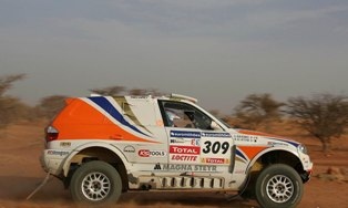 O francês Stephane Peterhansel, da Mitsubishi, lidera o rali com 9m56s de vantagem sobre seu companheiro de equipe Luc Alphand.