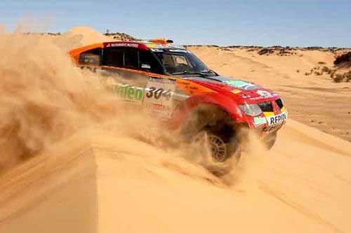 Porém logo atrás da VW de Sainz, apareceram quatro carros japoneses. Nani Roma e Lucas Cruz Serna ficaram em segundo (a 29 segundos), Luc Alphand e Gilles Picard (a 29 segundos), Stephane Peterhansel e Jean-Paul Cottret em terceiro (a 31 segundos), e Hiroshi Masuoka e Pascal Maimon em quarto (a 1min24). Ontem, na abertura do Dakar, a Volkswagen havia ficado com os cinco primeiros lugares, e somente na 7ª colocação aparecia a primeira Mitsubishi.