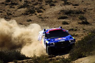 Nos 368 quilÁ´metros cronometrados da etapa de hoje, depois de ganhar muito tempo nas dunas cinza de Nihuil, a dupla Nasser Al-Attiyah/Timo Gpttschalk ainda forçou nos longos trechos de retas e reduziu para apenas 2min48seg a diferença que a separa dos seus companheiros de equipe, Carlos Sainz/Lucas Cruz.