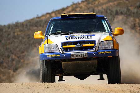 Atual campeã do Rally dos Sertões, o Chevrolet Rally Team está cada vez mais próximo de vencer a edição de 2006 na Super Prodution. Nesta terça-feira a prova foi de Barra a Seabra, no pé da Chapada Diamantina, totalizando mais 312 km na Bahia, e os irmãos Marlon e Joseane Koerich não descuidaram da picape S10 para manter a liderança na categoria. “Chegamos bem, sem nenhum problema na S10. Viemos tranqüilos, com muita cautelaâ€, assegurou o piloto catarinense. A prova de dez dias e 3.878 km termina dia 4 de agosto em Porto Seguro (BA).
