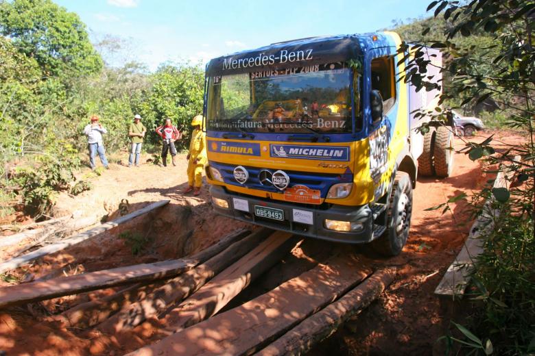 Guido Salvini, Weidner Moreira e Fernando Chwaigert são obrigados a reconstruir duas pontes de madeira para prosseguirem na 2ª etapa do Rally dos Sertões.