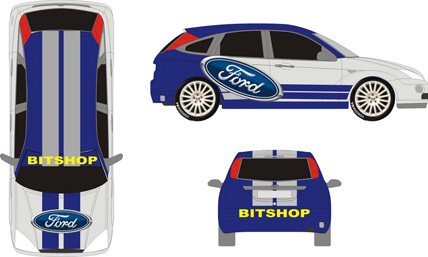 O Ford Focus por si só já é um carro diferenciado, com linhas modernas e que chamam a atenção do grande público consumidor de automóveis no Brasil. O layout do carro inclui a frente em cor prata tendo a traseira totalmente azul. Listras azuis também formam detalhes nas duas portas. A logomarca da Ford aparece com destaque nas duas laterais do Focus.
