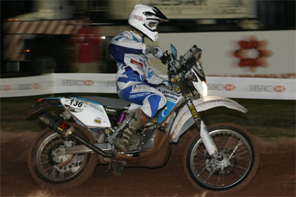 Entre as motos, um duelo que marcou o Sertões 2007 abriu as disputas. O brasileiro José Hélio, que defende o tÁtulo da categoria, reencontrou o francês Cyril Despres na pista do prólogo, mas desta vez o piloto oficial da austrÁaca KTM levou a melhor. José Hélio caiu logo na primeira curva e perdeu tempo, ficando em 15o lugar com 2min38. Despres fez 2min28, quatro segundo atrás do português Ruben Faria. Entre eles, ficaram Francisco Lopes (2min27), do Chile, e o brasileiro Sthênio Pessanha, ambos com 2min27.