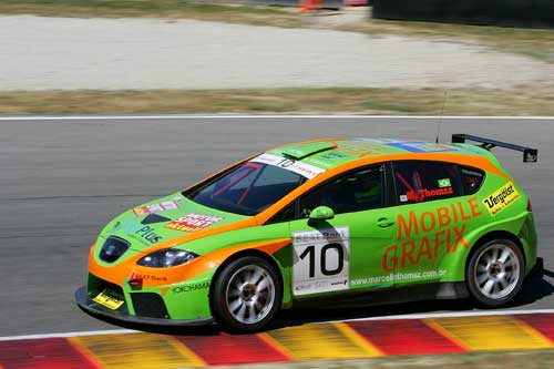 O brasileiro Marcello Thomaz conquistou na manhã deste sábado a 5ª colocação na prova que abriu a rodada italiana da Seat Leon Supercopa no circuito de Mugello. Partindo do 5º lugar do grid, Thomaz subiu para o 3º posto na largada, posição que manteve até levar a pior numa disputa com o alemão Bastian Kolmsee, quando perdeu duas posições e recebeu a bandeira quadriculada em 5º.