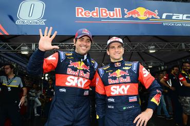 A Red Bull Racing fez a dobradinha no grid de largada para a segunda etapa dos campeonatos Brasileiro e Sulamericano de Stock Car. Em treino classificatório realizado na tarde deste sábado (9) no circuito do Velopark em Nova Santa Rita (RS), Cacá Bueno foi o mais rápido e conquistou a pole position. É a quinta pole do pentacampeão no traçado gaúcho – o que amplia seu recorde. Em segundo sai seu companheiro de equipe Daniel Serra, justamente o recordista de vitórias no Velopark, com quatro triunfos conquistados.