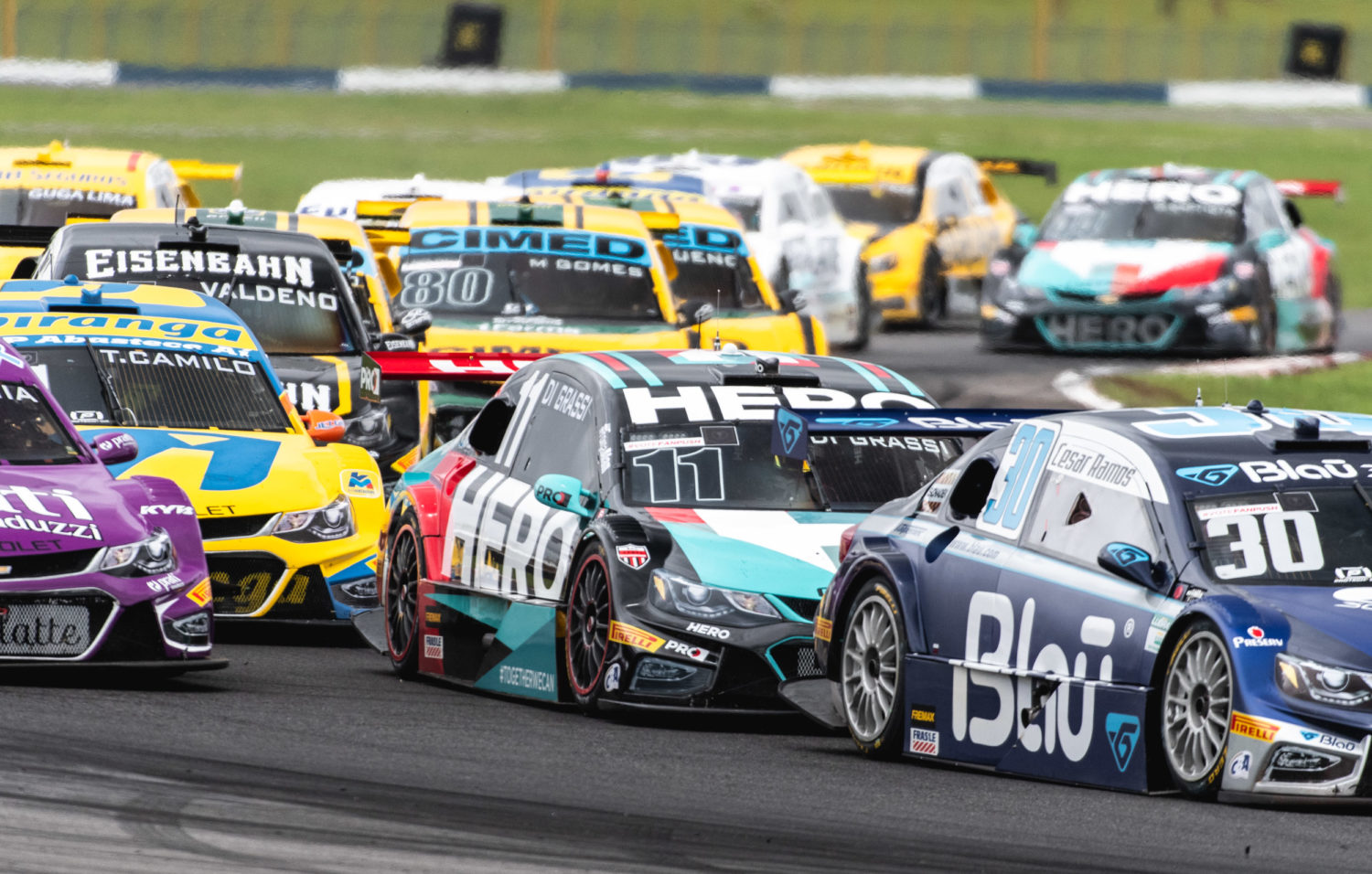 Melhor estreante da temporada no Campeonato Brasileiro de Stock Car, Lucas Di Grassi surpreendeu novamente ao fazer uma impecável corrida de recuperação durante a segunda prova da rodada dupla, disputada neste domingo (4) em Goiânia. O piloto da Hero Motorsport abandonou a primeira prova após uma batida e por isso foi obrigado a largar do box. Com uma pilotagem segura e muita determinação, Di Grassi seguiu a estratégia estabelecida pela equipe, chegou ao final da prova com pneus ainda em boas condições e iniciou uma sequência de ultrapassagens que quase o levaram ao pódio. Apesar de contar com menos pushs que seus concorrentes, Lucas terminou no quarto lugar, em uma das provas mais disputadas da temporada – a liderança e principais colocações mudaram de mão diversas vezes.