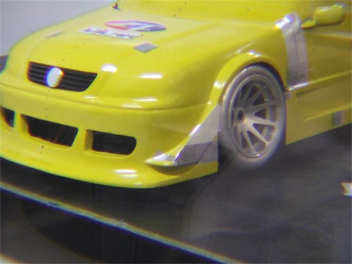 Outros ensaios que foram valiosos para a análise e equalização dos carros foi um teste chamado “oil flow”, no qual aplica-se na superfÁcie do modelo uma mistura de óleos com dióxido de titânio, permitindo assim avaliar o escoamento do ar nas várias carrocerias, e o impacto aerodinâmico dos espelhos retrovisores, nacas e outras áreas de turbulência provocada por cantos vivos na carroceria.