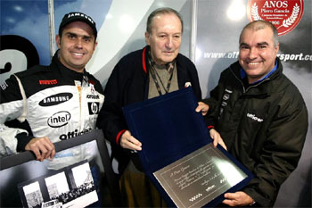 Piero Gancia, o primeiro Campeão Brasileiro de Pilotos, não conseguiu esconder a emoção pela homenagem que recebeu da equipe Officer MotorSport, hoje, no autódromo de Interlagos.