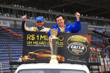 Ricardo MaurÁcio, da Eurofarma RC (Chevrolet) é o mais novo milionário da FamÁlia Stock Car. O piloto conquistou a vitória na Corrida do Milhão Goodyear, realizada neste domingo, no Autódromo José Carlos Pace, em Interlagos, válida pela sétima etapa da Copa Caixa Stock Car. A conquista foi graças ao belo trabalho da equipe no pit stop, que permitiu que Ricardinho assumisse a ponta nos boxes. O paulista cruzou a linha de chegada com o tempo de 1h06min06seg, para as 35 voltas no circuito paulistano, e tornou-se o primeiro piloto a vencer duas vezes na temporada 2010, repetindo o feito da terceira etapa, no Velopark.
