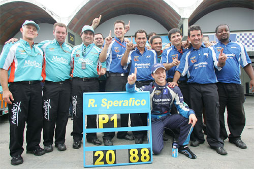 Mas a definição dos dez primeiros do grid foi totalmente dominada por outro Sperafico, o Ricardo, que foi o único da rodada abaixo de 1min21seg e garantiu a pole position, a segunda da temporada de estréia na Copa Nextel Stock Car. Sobre a conquista da pole, Ricardo comentou que fez uma volta boa com o primeiro jogo de pneus novos logo no inÁcio do treino, garantindo a sexta colocação e uma das dez vagas na Super Classificação. “Não precisei usar o segundo jogo de pneus e por isso estava convicto de que brigaria pela pole. Na Super Classificação, pudemos utilizar o segundo jogo de pneus e deixar os concorrentes para trás. A pista também melhorou um pouco, mas a nossa confiança era muito grande desde sexta-feiraâ€, afirmou Ricardo.