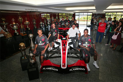 O elenco de estrelas do Flamengo, incluindo o capitão Fábio Luciano, além de grandes jogadores como Ibson, Obina e Bruno viram o carro pela primeira vez neste sábado – dia da apresentação do carro da Superleague Formula na sala de troféus do clube.