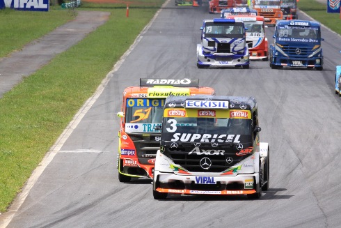 Geraldo Piquet largou na 4ª colocação e já na largada pulou para 3º. Neste momento, Wellington Cirino, seu companheiro de equipe na ABF Competições, liderava a prova. Antes da neutralização obrigatória no 20º minuto, Geraldo já era o 2º escoltando Cirino. Seu companheiro de equipe precisa vencer para manter chances de tÁtulo, por isso o brasiliense não tentava nenhuma manobra para assumir a liderança. Na parte final da corrida, Roberval Andrade cresceu muito na prova e assumiu a segunda colocação. Nas voltas finais Cirino abandonou com problemas e deixou a briga pela vitória para Andrade e Piquet nas quatro últimas voltas. O filho do tricampeão mundial de Fórmula 1 pressionou muito na busca da sua terceira vitória correndo em casa e alguns momentos chegou a colocar seu caminhão Mercedes Axor lado a lado com a Scania de Roberval. Depois de três voltas intensas, Roberval cruzou em 1º com Piquet praticamente colado na 2ª colocação. “Eu estava mais rápido que ele nas voltas finais. Tentei em alguns pontos da pista e percebi que só passaria forçando ou batendo. Mas este não é meu feitio e preferi garantir o segundo lugar. Talvez se tivesse mais voltas, poderia ter assumido a liderança”, explicou o duelo nas voltas finais.
