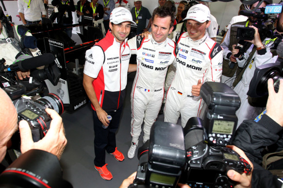 O trio Timo Bernhard/Mark Webber/Brendon Hartley no Porsche 919 Hybrid #1, completa a primeira fila.