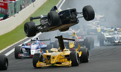 A prova teve um incrÁvel acidente logo na largada, quando o espanhol Miguel Molina, da Pons Racing, voou com seu carro, caindo fora da pista.