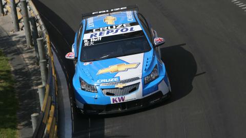 Em um treino marcado pelos acidentes, o inglês James Thompson (Chevrolet Cruze da RML) conquistou nesta sexta-feira (20/11), a pole-position para prova de abertura da última rodada dupla da temporada, em Macau. Huff marcou o tempo de 2m32s141 no minuto final da Q2.